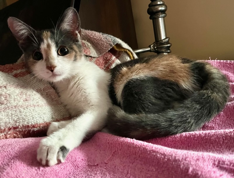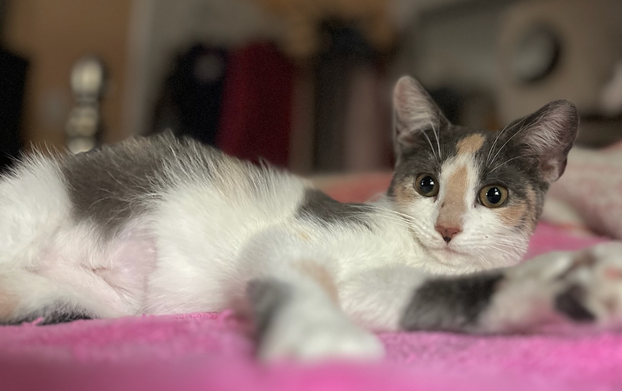 | Fi Fi is a 6 month old, spayed female, dilute calico beauty. She is great with other cats and humans. Fifi is up to date on vaccines, microchipped and ready to become a part of a family of her own. |